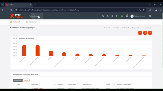 URL: https://sistemav2.evertrack.com.br/activities/dashboards/real-time/sites-and-applications