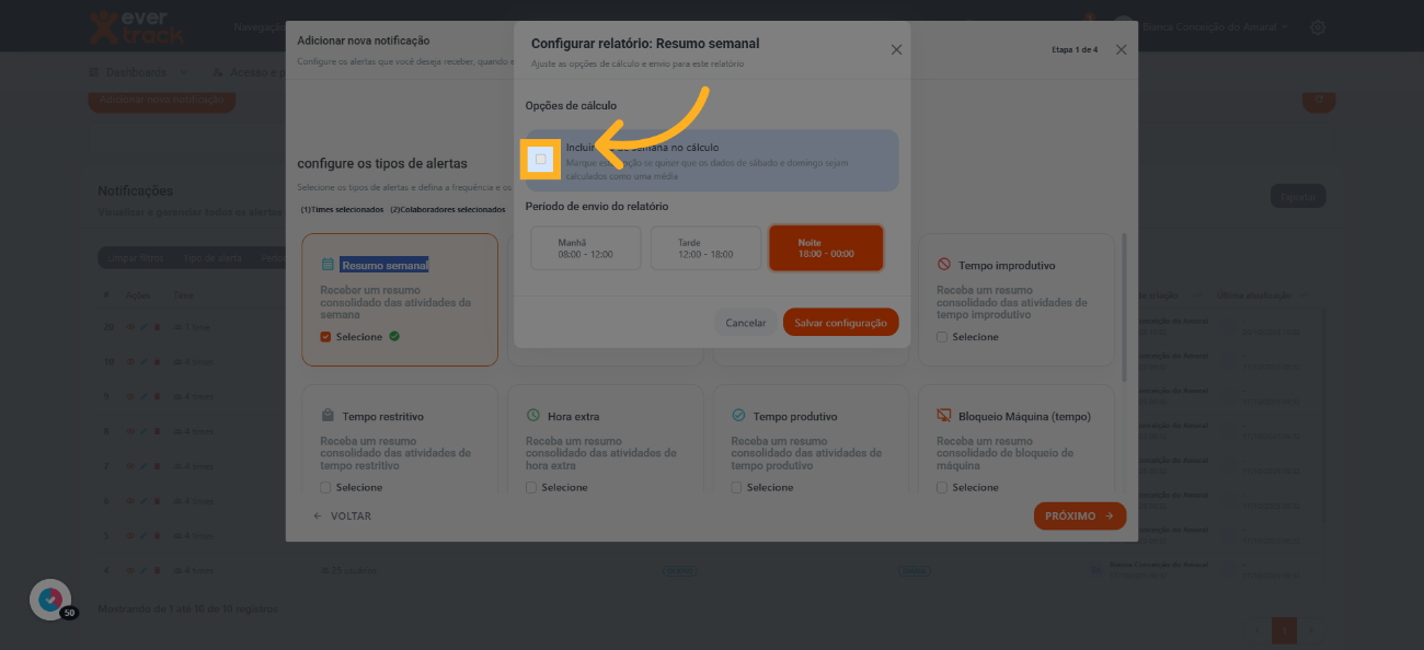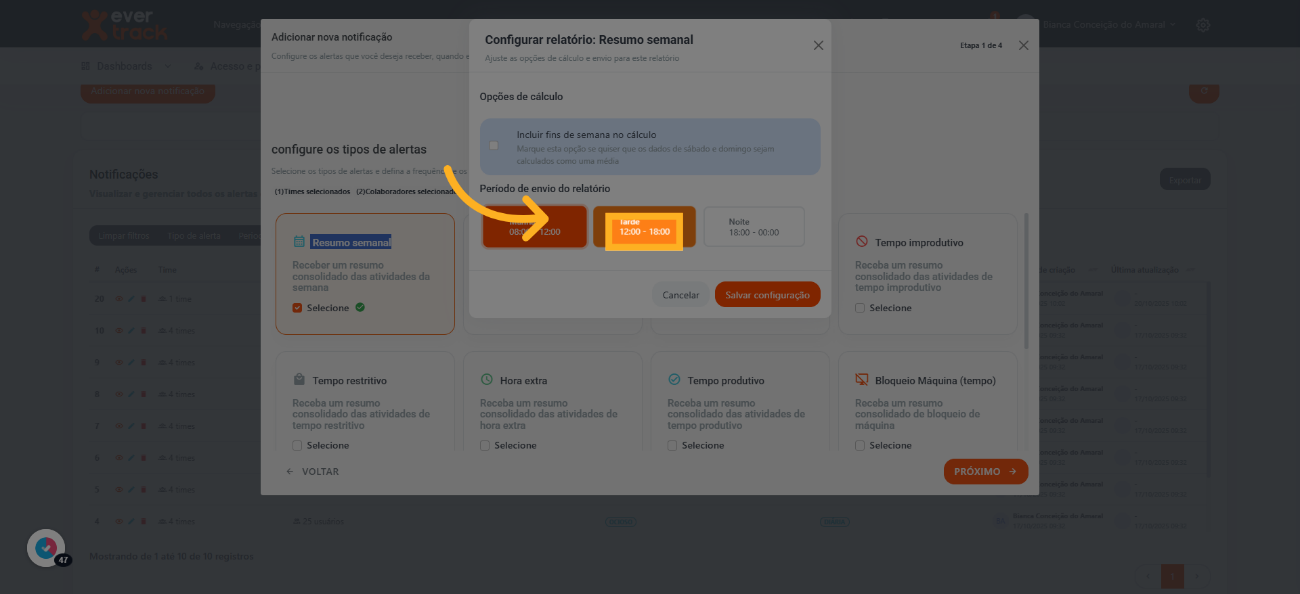 Clique "Resumo semanal" ou "Resumo diário" para definir a periodicidade do alerta.