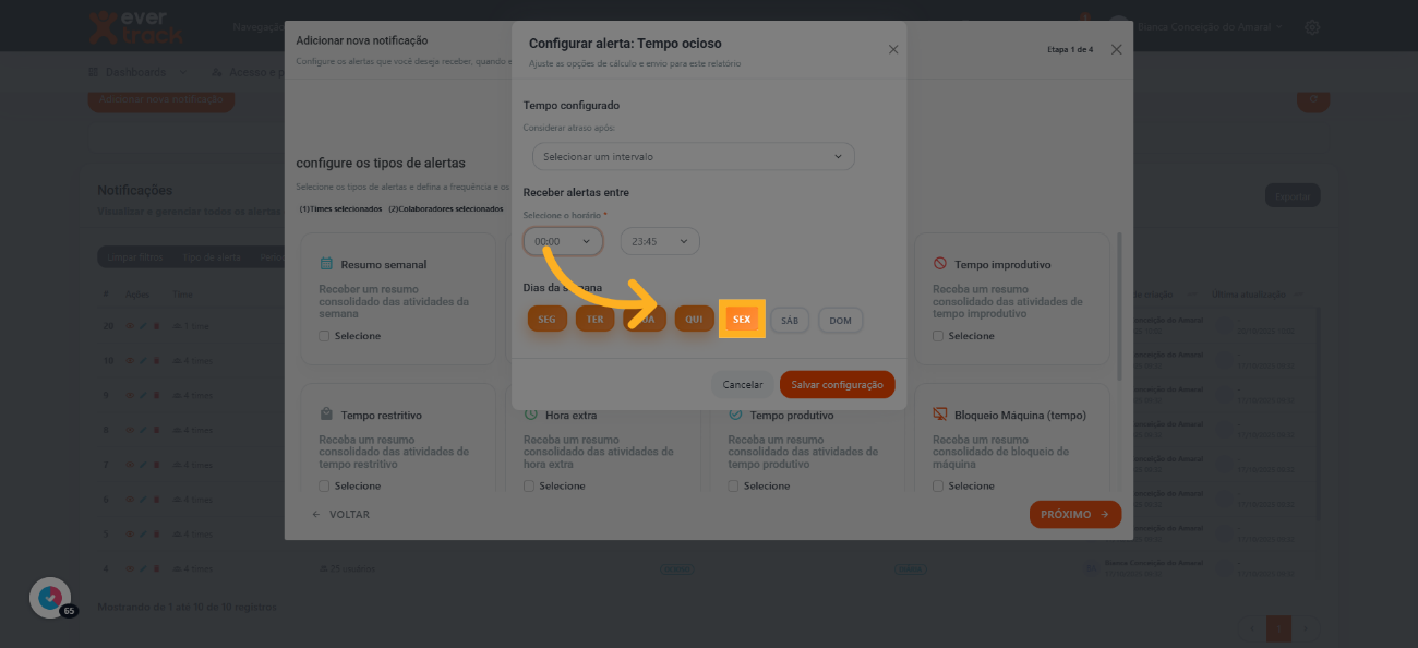 Defina os dias que deseja receber essas notificações em "dias da semana."
