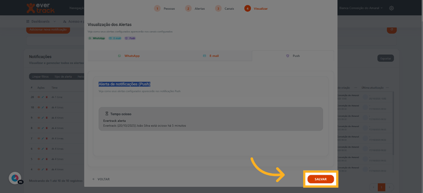 Clique "Salvar" para registrar a nova configuração de notificação.