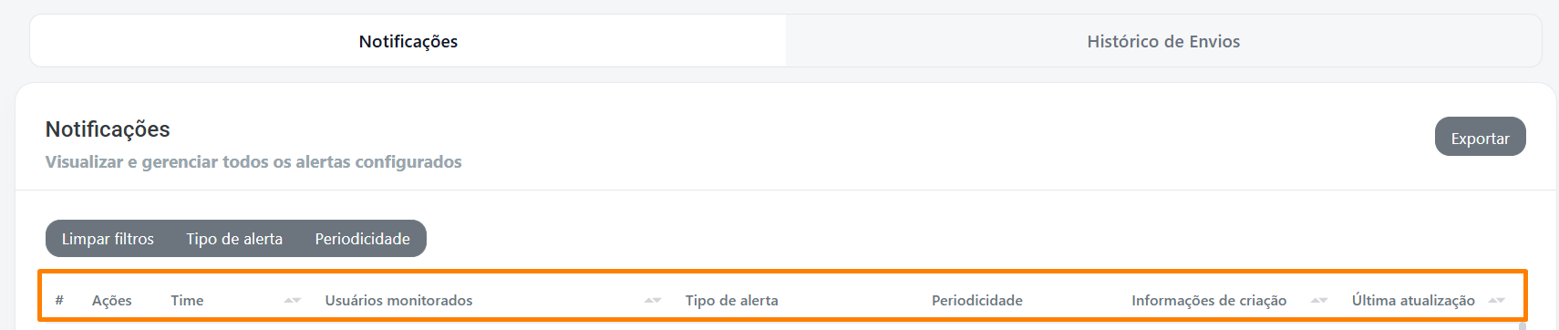 Na tabela, é possível visualizar as informações das notificações já criadas.