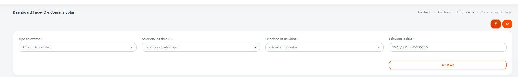 Esta tela exibe o detalhamento coletivo e individual das coletas de reconhecimento facial realizadas pelo programa interno Face ID.