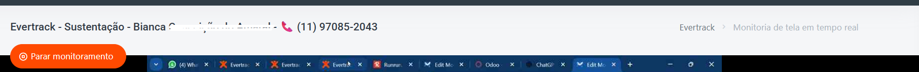 Além de interromper a gravação pela tela de Usuários, também é possível parar o monitoramento clicando em “Parar monitoramento”.